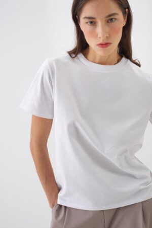 A timeless crewneck T-shirt made from a soft, breathable cotton blend with a hint of stretch. Designed for a regular fit with short sleeves and a clean finish.